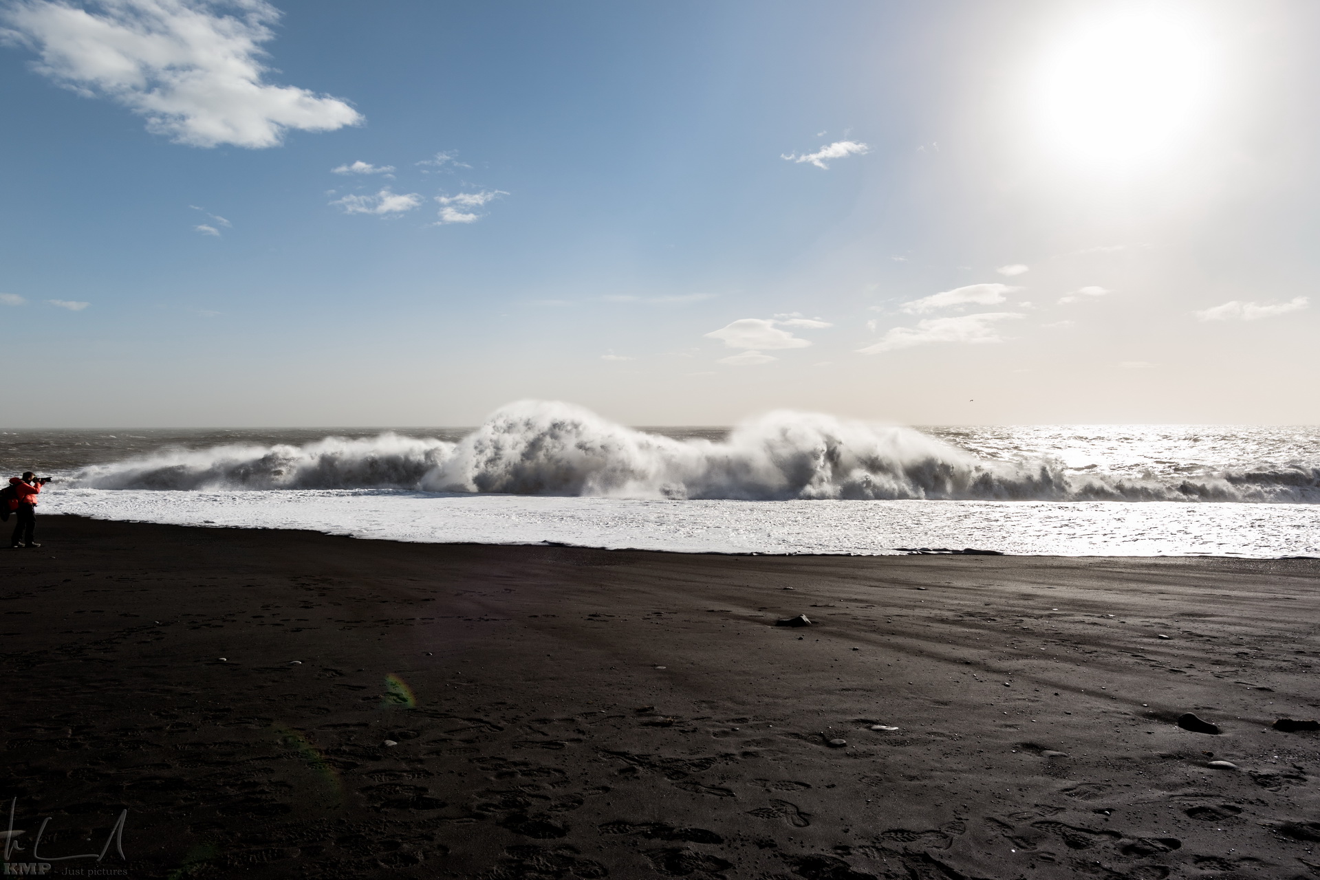 Grosse, unberechenbare Wellen am schwarzen Strand